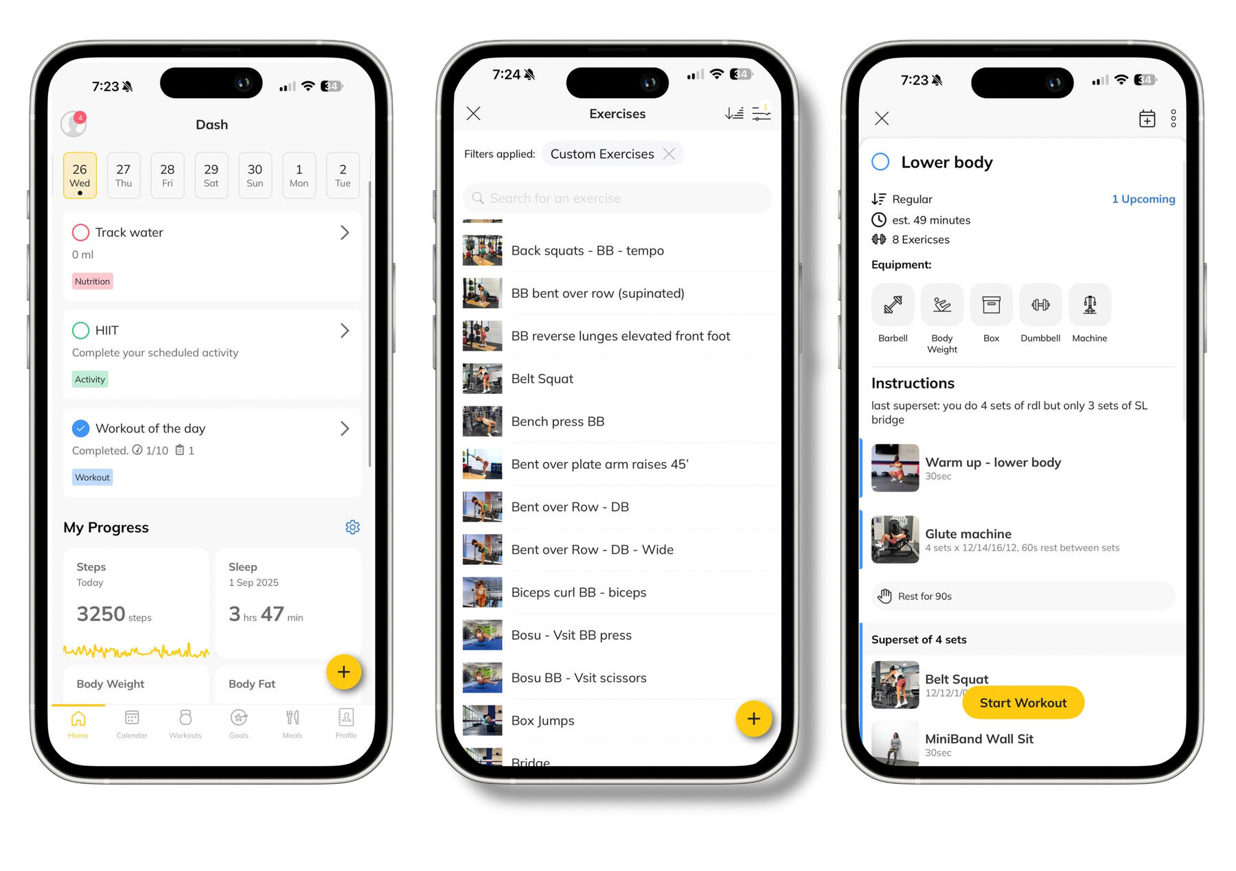 Tailored support, delivered your way - choose from three core servicesIf you want a full training plan, nutrition guidance, and daily support from your coach, online coaching is the best option for you.If you’re local and want everything included in online coaching plus in-person sessions, you can reach out to book 1:1 PT.If you only need a structured workout plan without nutrition support or accountability, our training programs are a perfect fit.